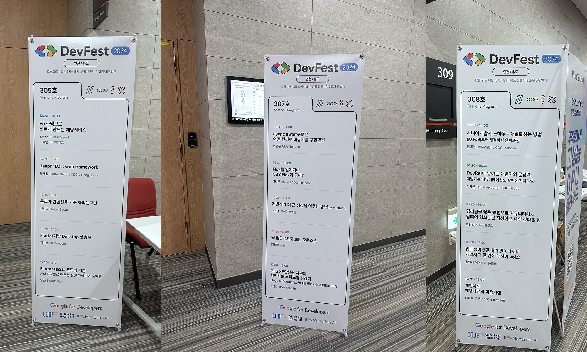 각 회의실 마다 진행되는 일정을 다시 확인할 수 있도록 배너를 설치해주신 덕에 실수없이 들어갈 수 있었습니다!