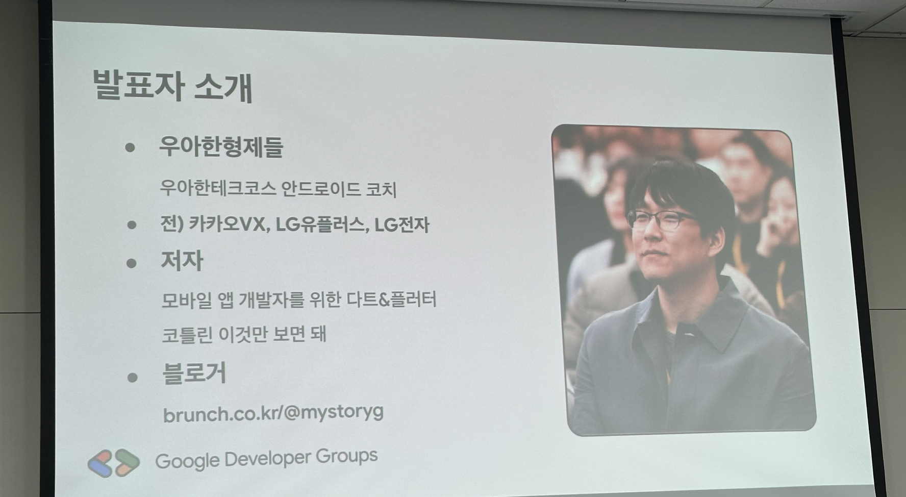 세션을 듣다가 알게된 것은 첫 페이지 우측에 연사자님의 사진이 큼지막하게 들어간다는 것입니다.