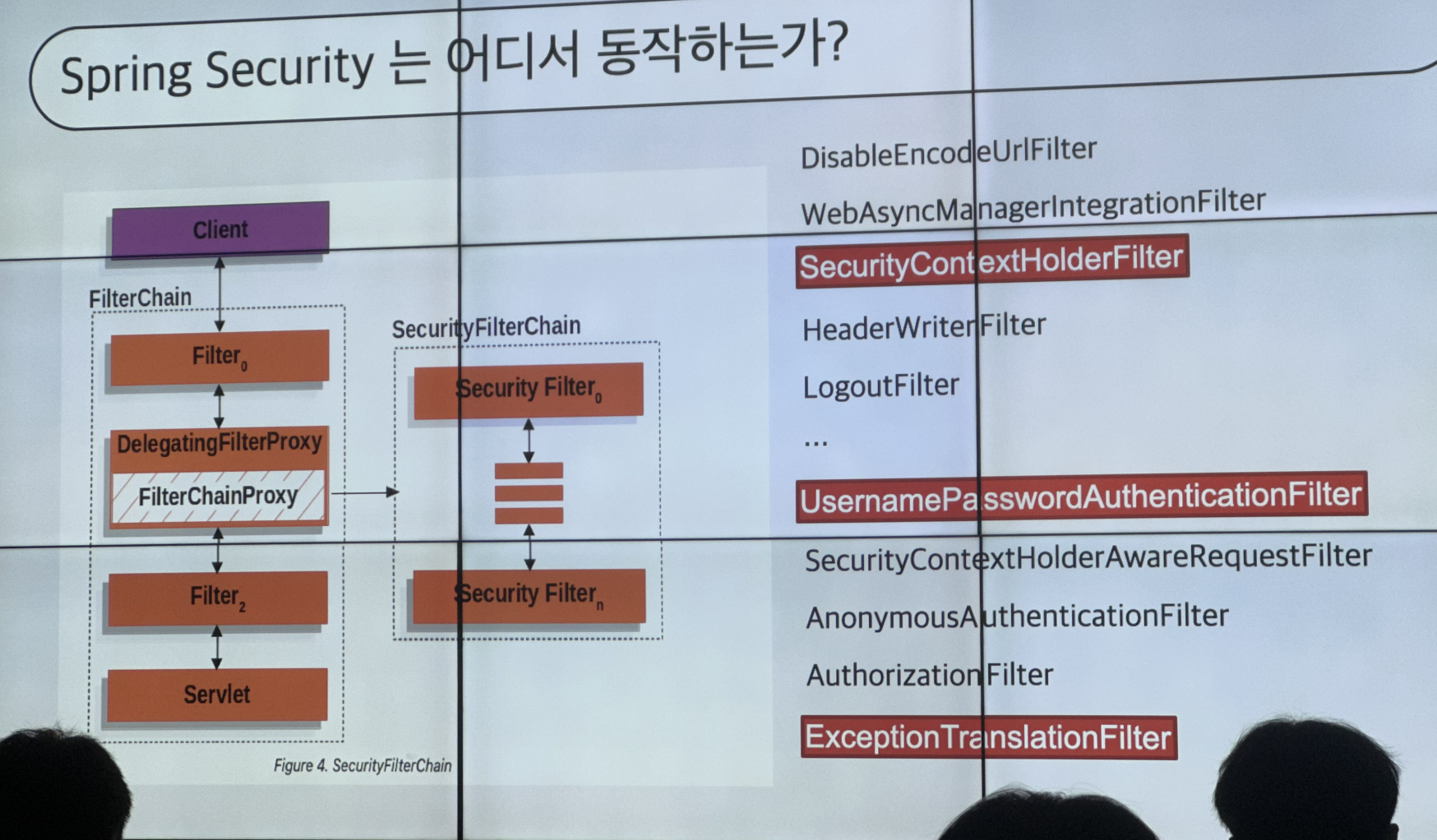 Spring Security에서 Filter는 우측에 표시된 3가지만 기억해도 된다고 하셔서 후딱 찍어두었습니다.